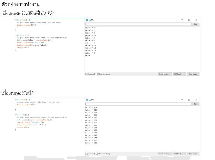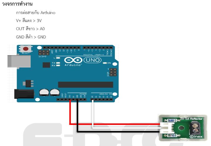 บรรจุโมดูล TCRT5000 ซึ่งรวมเอา LED อินฟราเรด และโฟโต้ทรานซิสเตอร์ไว้ภายใน เมื่อจ่ายไฟให้วงจร LED จะส่งแสงอินฟราเรดในรัศมีที่กว้าง ถ้ามีวัตถุอยู่ด้านหน้าโฟโต้ทรานซิสเตอร์ จะได้รับแสงสะท้อนกลับมา ทำให้สามารถนำกระแสได้ เกิดแรงดันตกคร่อมขึ้นที่ขา S ( Vout ) โดยค่าแรงดันจะมากหรือน้อย ก็ขึ้นอยู่กับความเข้มของแสงอินฟราเรดที่ตกกระทบโฟโต้ทรานซิสเตอร์